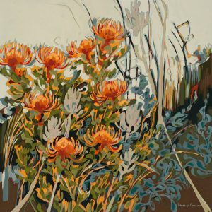 King Protea Pincushions and Blombos (Unspoken series) 800x800mm