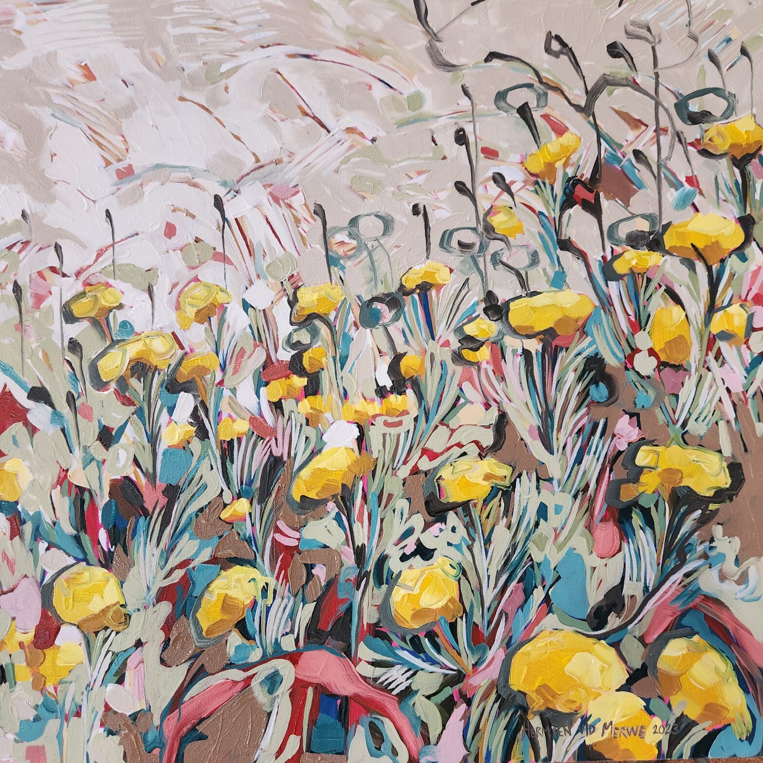Watsonias, Aristeas and Helichrysums (Perception series) 1100x1100mm Oil on canvas