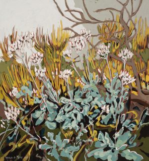 Watsonia and Helichrysum (Grounded series) 600x650mm